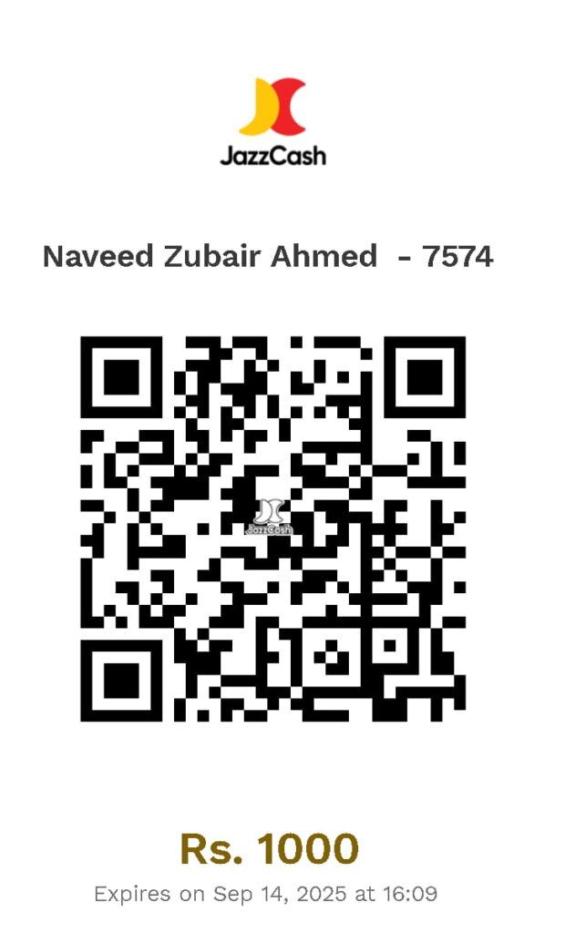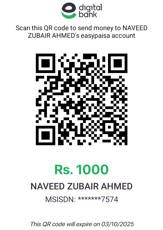 Please scan QR Code or use Raast ID to pay (Pakistani Rupees 1000/- non refundable). Then press the button “Send Deposit Slip” to send the picture/screenshot of deposit slip to the admin on WhatsApp.